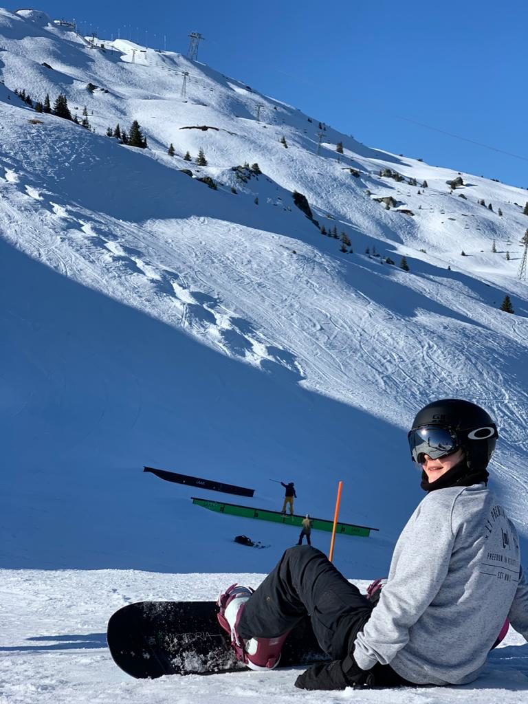 Andrina geniesst den fast menschenleeren Snowpark in Laax