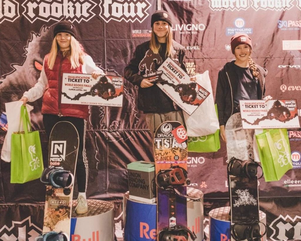 Sehr gute Zweite an der World Rookie Tour in Livignio / Italien Posted on 15. Januar 2020 by wpadmin Andrina; die Gewinnerin Mia Brooks (GBR); die 3. Heli Bockhorni (GER)