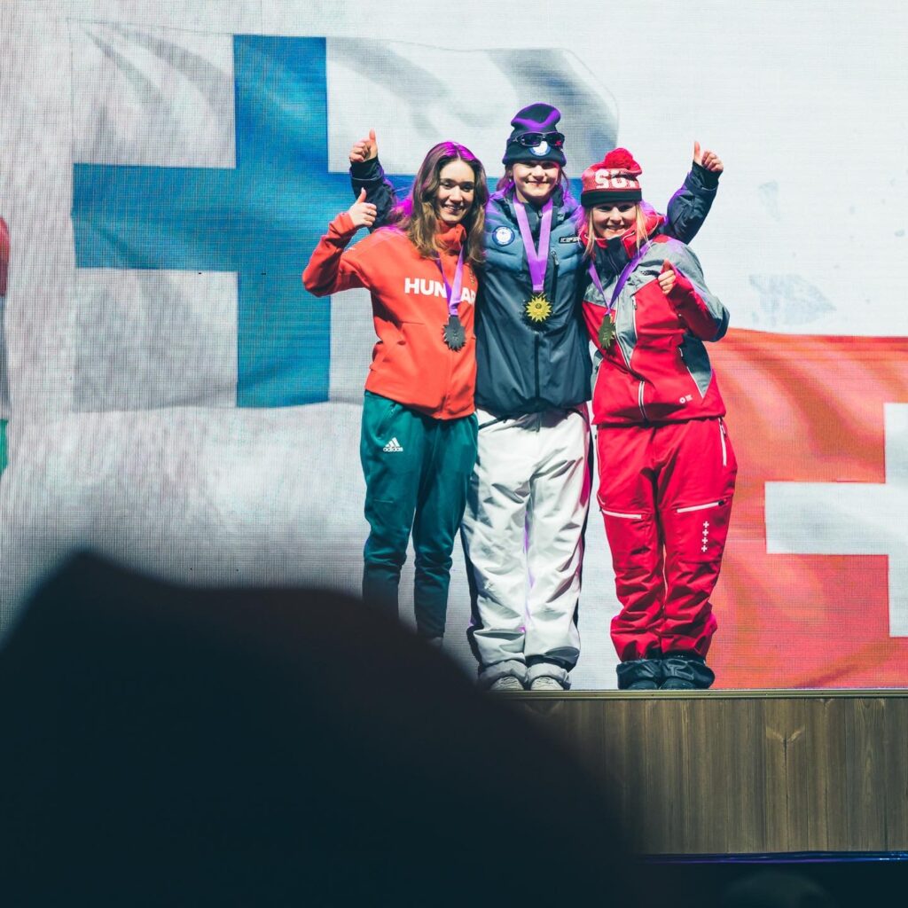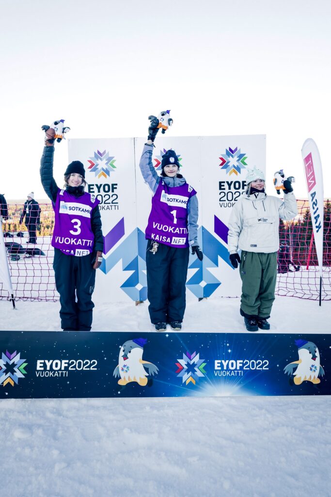 EYOF Bronzemedaille im Slopestyle! Posted on 24. März 2022 by wpadmin Links die 2. Kamilla Kozuback (Hun); Mitte die 1. Telma Särkipaju (Fin)